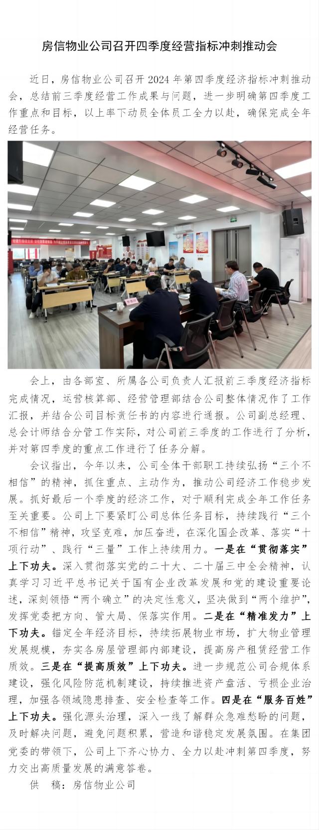 房信物业公司召开四季度经营指标冲刺推动会