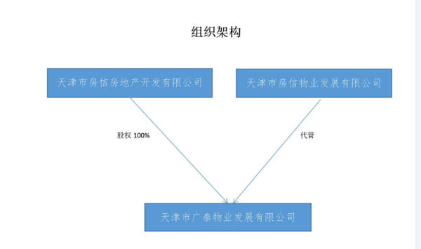 天津市广泰物业发展有限公司成立于1994年9月,公司股东为天津市房信房地产开发有限公司,持股比例为100%。2018年3月起由天津市房信物业发展有限公司代管,目前与该公司房屋管理三部合署办公,主要从事物业管理和企业产房屋经营管理业务。